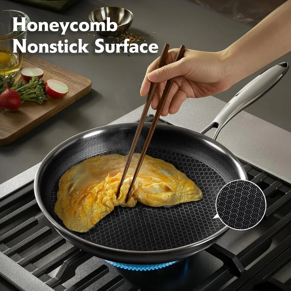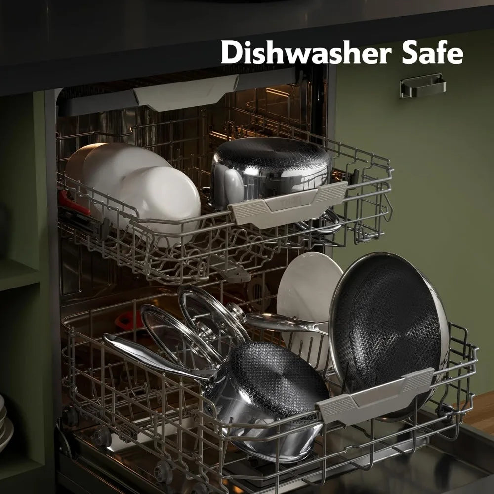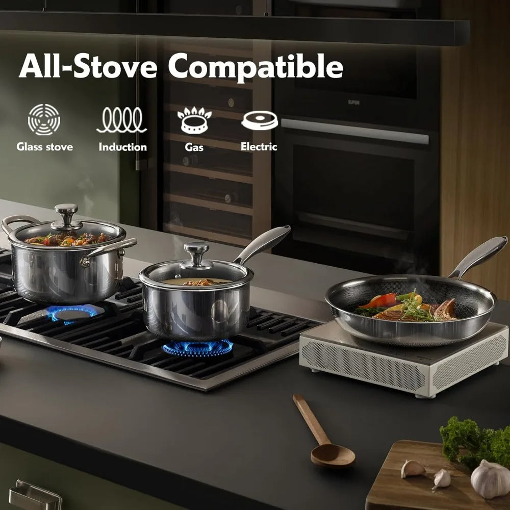 10 Pcs Non Stick Pots and Pans Set with Lids, Hybrid Stainless Steel Cookware Set, Skillet,Stock Pot,Frying Pan,Kitchen Cooking