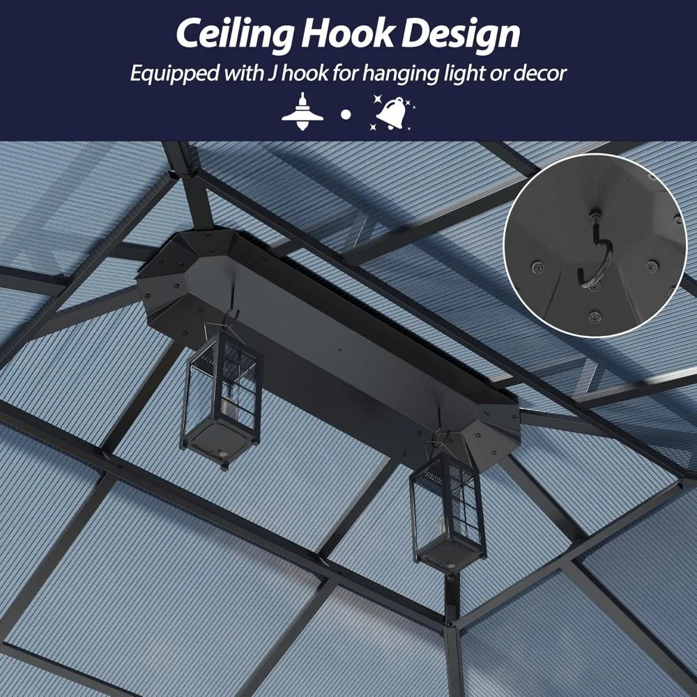 12' x 14' Hardtop Gazebo with Double Polycarbonate Roof, Metal Frame