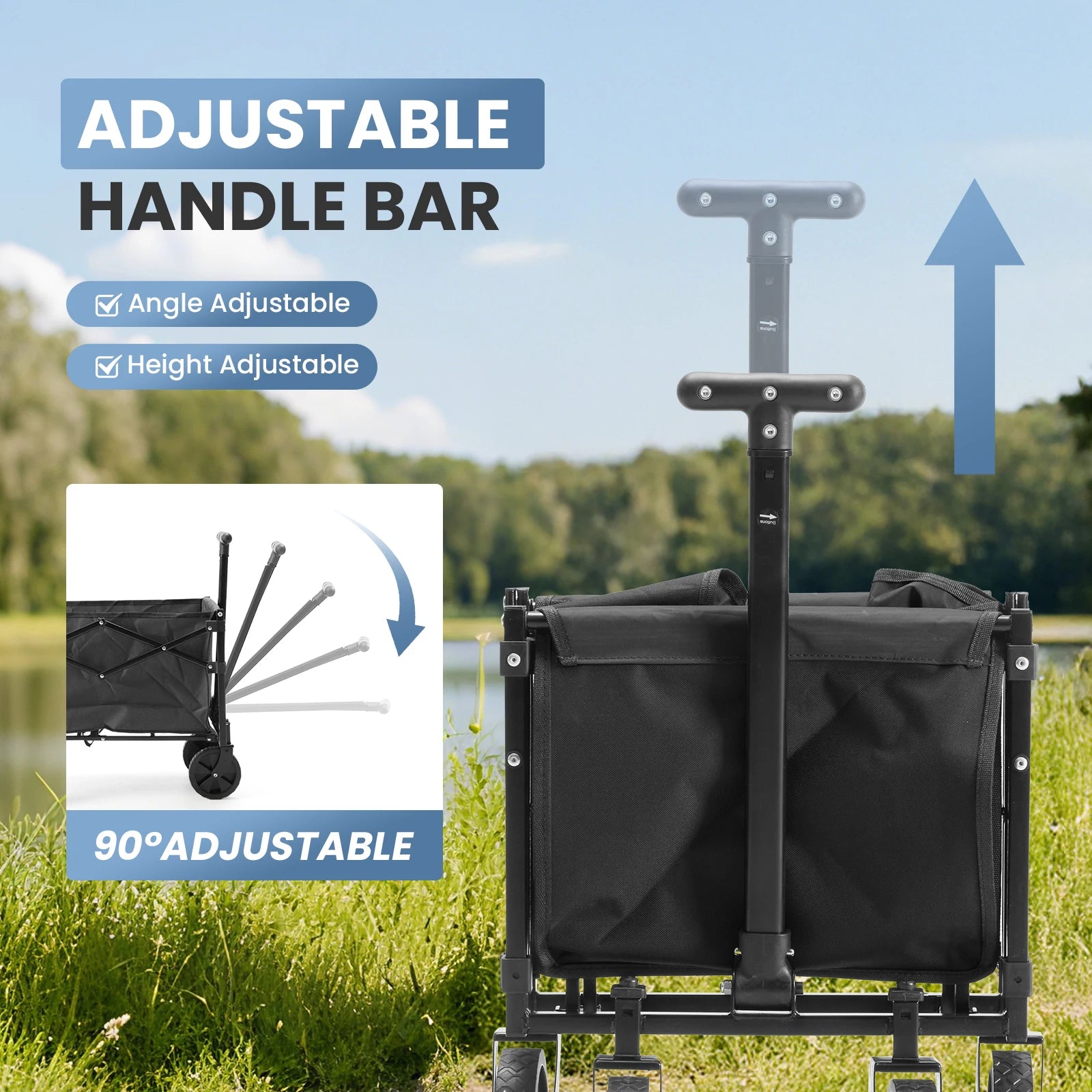 Outdoor Foldable Collapsible Wagon with Wheels 176 lbs Capacity Lightweight Portable with Flexible Handle for Garden Camping