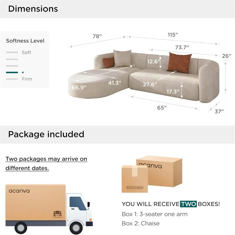 Velvet L-Shaped Sofa Curved Back Left Chaise